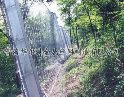 被動防護網(wǎng)是由鋼絲繩網(wǎng)、環(huán)形網(wǎng)、固定系統(tǒng)、減壓環(huán)和鋼柱四個主要部分構(gòu)成。鋼柱和鋼絲繩網(wǎng)連接組合構(gòu)成*個整體,對所防護的區(qū)域形成面防護,從而阻止崩塌巖石土體的下墜,起到邊坡防護作用。